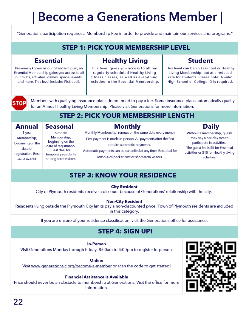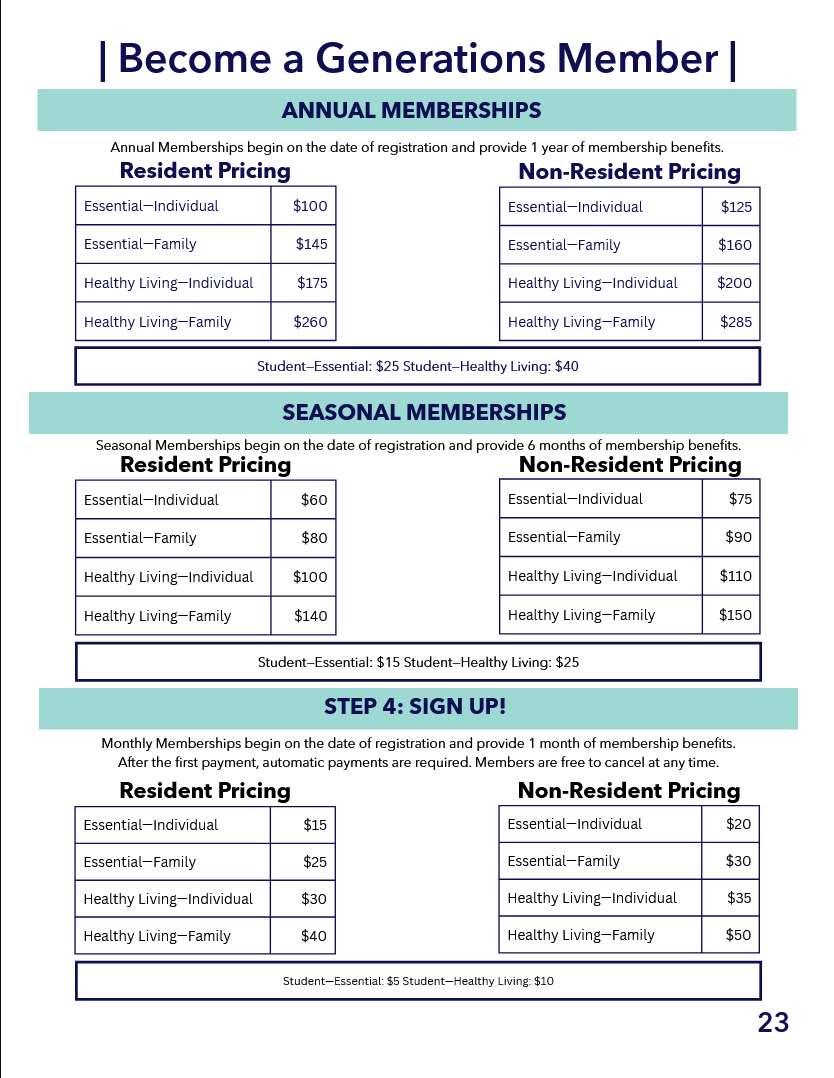 Generations participation requires a Membership Fee in order to provide, maintain, and expand our services and programs.
